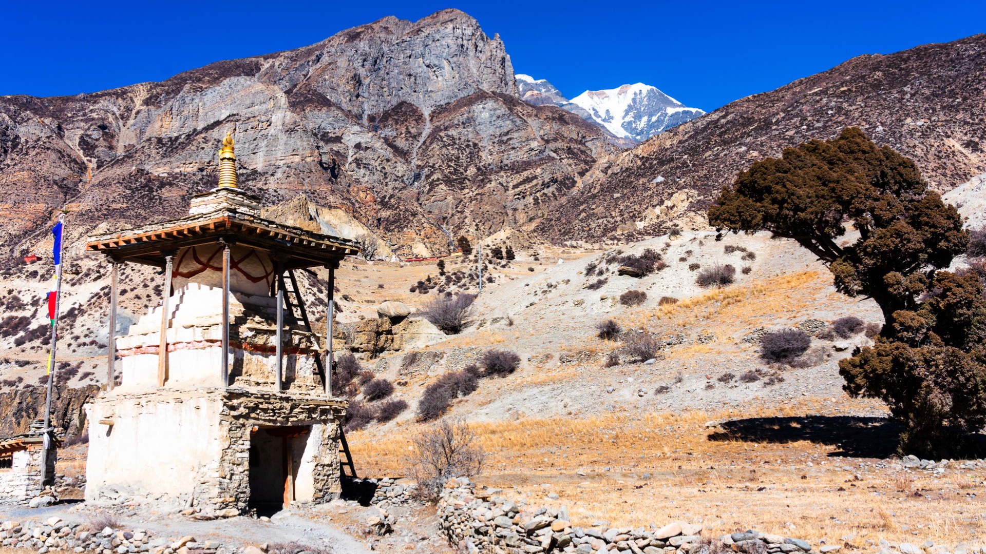 Arrive by private helicopter, soaring over the deepest gorge on Earth — the Kali Gandaki — as the Himalayas unfold beneath you.